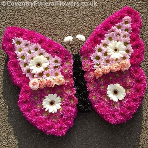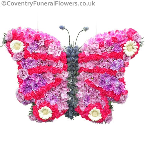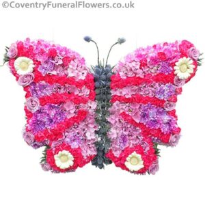 Butterfly Funeral tribute made with fresh flowers.