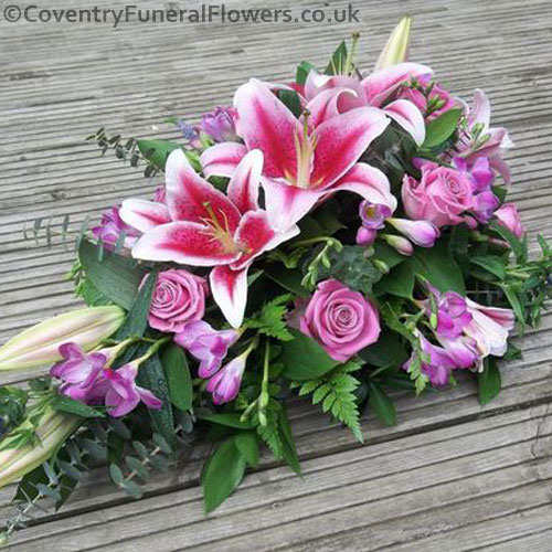 Pink Lily Spray Funeral Tribute made with fresh flowers. We can use flowers colours of your choice. Delivered anywhere in Coventry