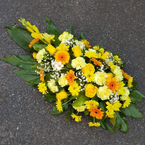 Yellow Roses, Carnations and Chrysanthemums spray tribute